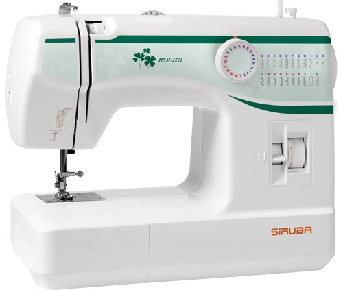 Бытовая швейная машина количество операций 21, качающийся вертикальный челнок, подъем лапки 6 мм, длина стежка 4 мм, ширина зиг-зага 5 мм, петля полуавтомат, строчка оверлок, скорость 720 об/мин.