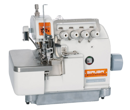 Siruba 747L-514M3-24 - 2-игольный 4-ниточный оверлок общего применения по трикотажу. Ширина обметки 4мм, расстояние между иглами 2мм, скорость 7500 ст/мин, тип иглы DCx27.
