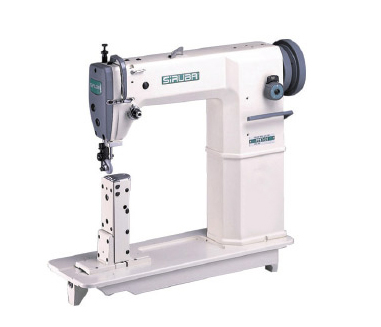 Siruba P717-01 - Одноигольная машина челночного стежка на колонковой платформе для узких изогнутых деталей обуви, кожаных изделий, шапок, др., нижняя пода-ча, подъем лапки 7,2(10) мм, длина стежка 0-4 мм, скорость 3000 об/мин.