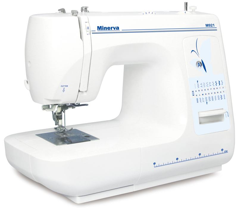 MINERVA M921 - швейная машина с оверлоком (встроенным оверлочным устройством - обрезчиком края ткани). Выполняет 21 строчку и выметывает петлю в автоматическом режиме.
