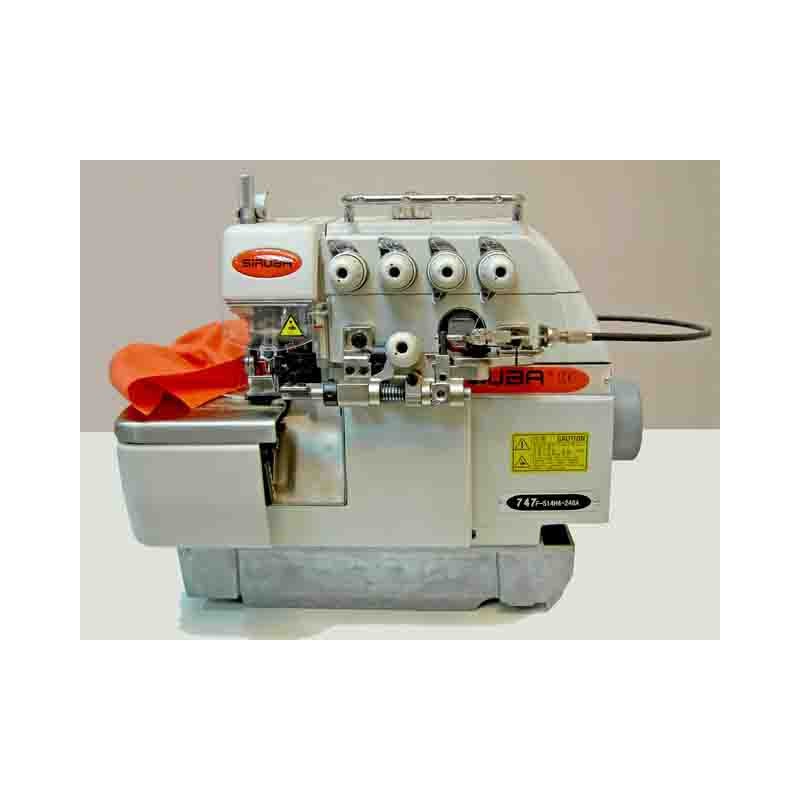 Siruba 747K-514H4-24 GA - 4-х нит. оверлок, расст. между иглами 2мм, ширина обметки 6мм, длина стежка до 3,6 мм, дифференциал 0,7-2мм, подъем лапки 6,0 мм, скорость 7500 об/мин, устройство для присборки.