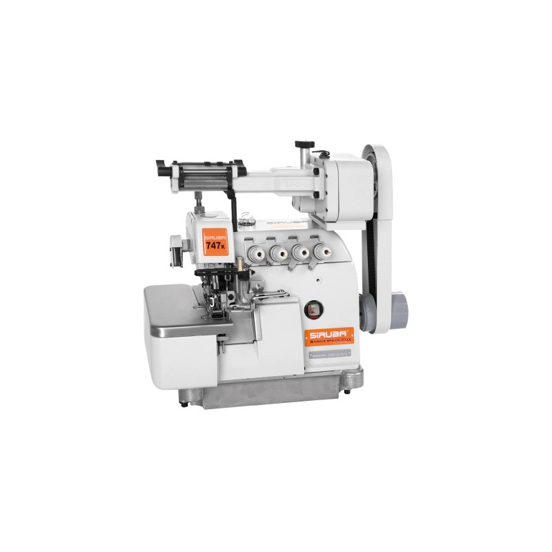 Siruba 747K-514M2-24/LFC-3 - 4-х нит. оверлок,между иглами 2мм ширина обметки 4мм, дифференциал 0,7-2мм, подъем лапки 5,5 мм, длина стежка до 3,6мм, скорость 7500 об/мин, механическое устройство подачи резинки.